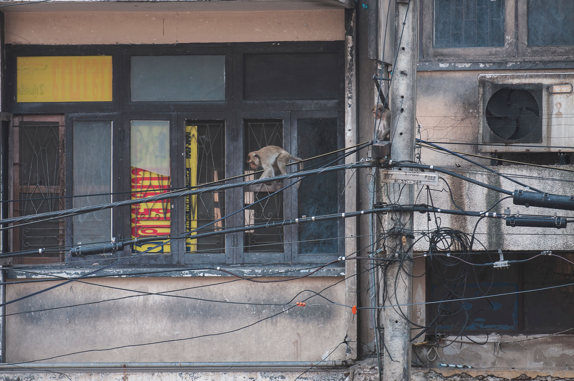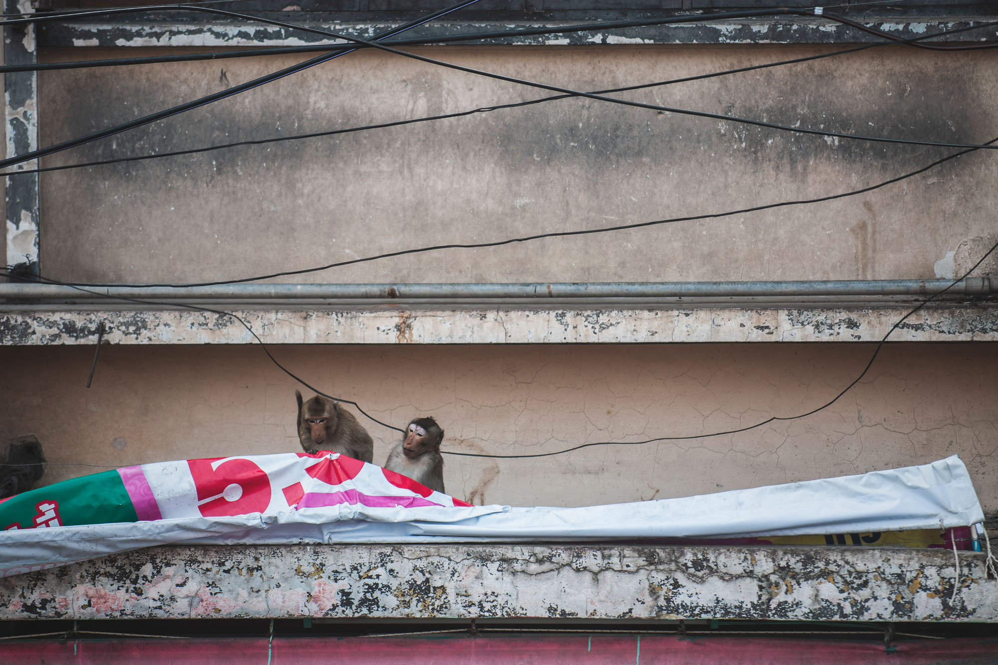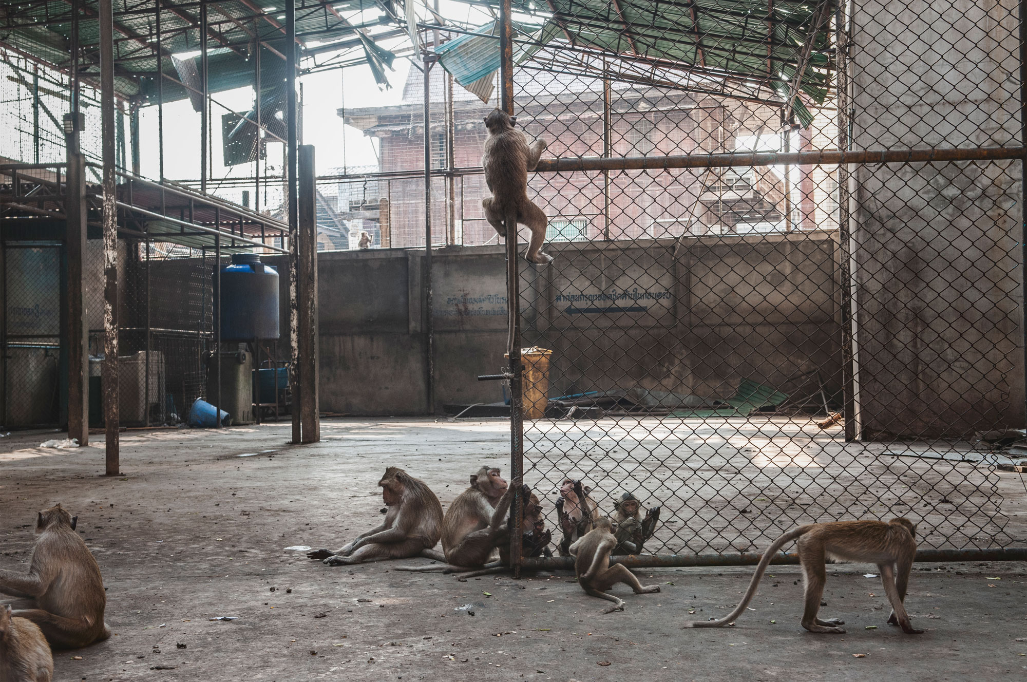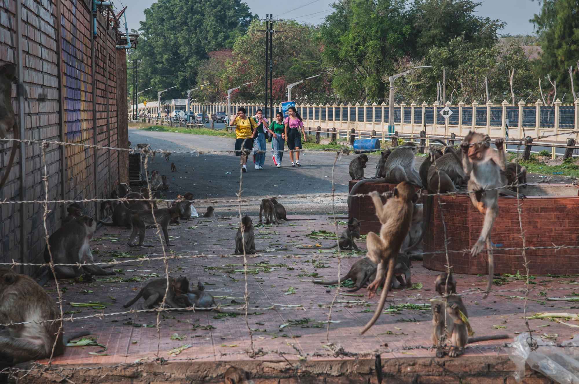 Known as the monkey kingdom, Lopburi is a small village located 150 kilometers north-east of Bangkok that has developed over time into some sort of concrete jail for a community of more than 2000 macaques.