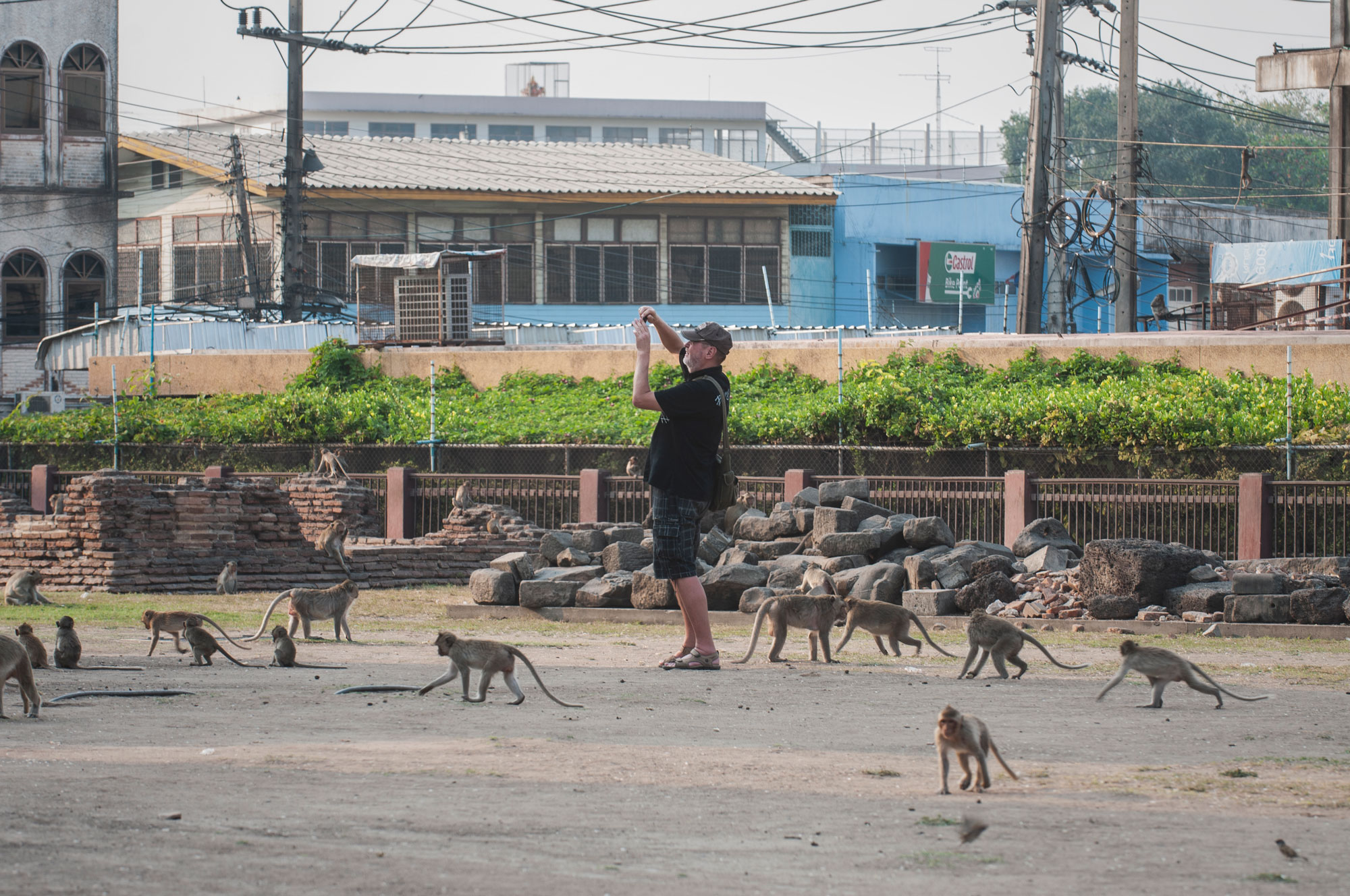 Lopburi´s primates live scattered especially around the Prang Sam Yot temple and an old abandoned warehouse building. Monkeys do often snatch food from tourists and this is even sold by travel agencies and tourism portals as a novelty attraction.
